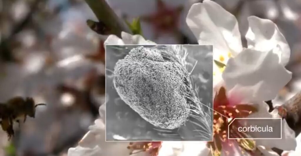 2. POLLINE: Honeybees do collect pollen (dustlike powdering male gamete) from the anthers of flowers. Pollen are source of proteins for young bees. When worker bees are collecting nectar and pollen for honey and feeding the colony, pollination of flowers take place. Pollen grains are transfered from anther to stigma.