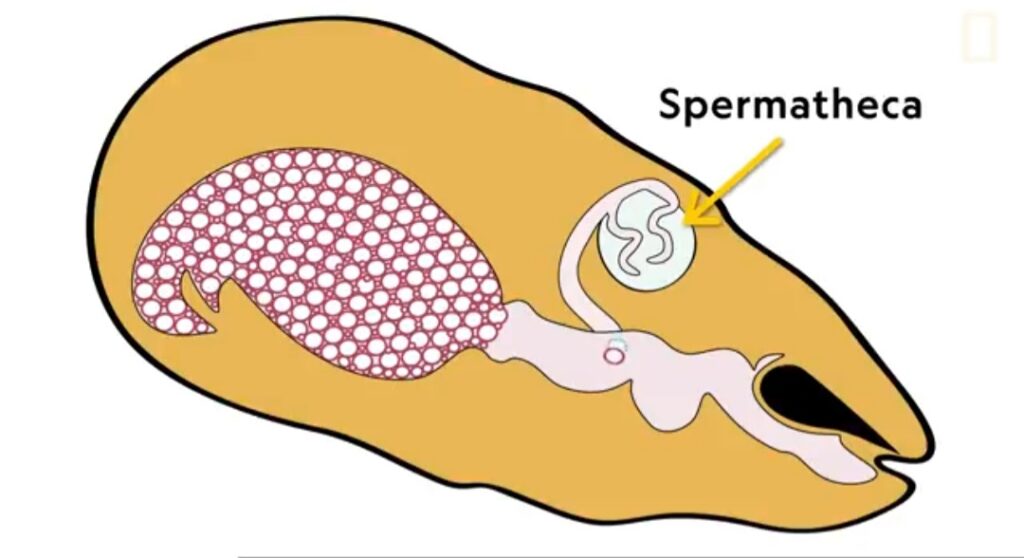 THE QUEEN BEE: Each hive do have only one queen bee who is the only reproductive individual in the colony. Two queen bees do not live in a colony. When two queen bees emerge at the same time in a colony, the two will fight to death until only one of them survive the fight. The queen usually mates with more than one drone (called polyandry). She mates with about 20 drones when flying in the air ( that is mating flight). After some days, she begins to lay fertile eggs. sufficient sperm are stored in the Queens sperm pouch ( spermatheca) , to fertilize all the eggs she will lay for the rest of her life. if her supply of sperm is exhausted in the sperms pouch, she will lay unfertilized eggs in the cells. The unfertilized eggs will develop to form drones. The process by which the unfertilized eggs develop to form adult drones is known as parthenogenesis. In the act of mating with the queen, the drones die . The queen can leave for up to five years.