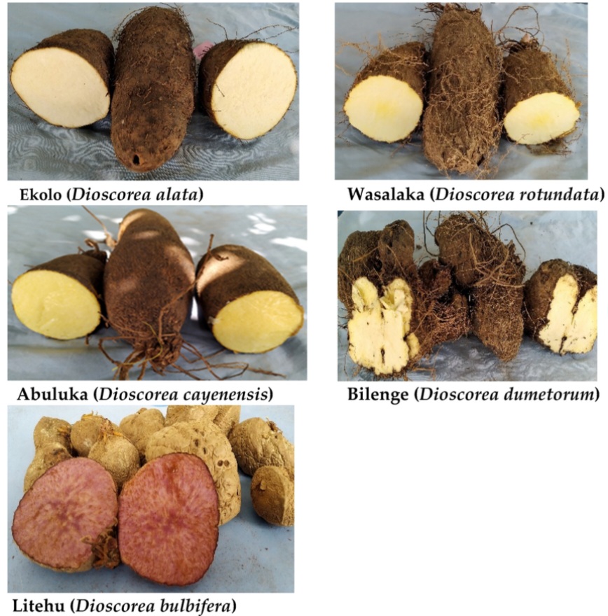 Dioscorea rotundata (White Yam): Has a dry, starchy texture and is often used in traditional dishes.