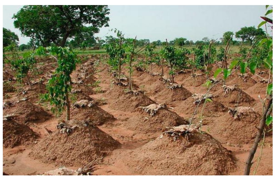 Both mounds and ridge making for yam production is common among traditional peasant farmers.