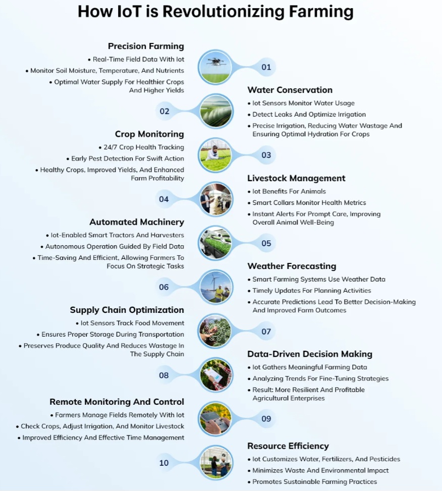 Real-time data and insights from IoT sensors empower farmers to make more informed decisions about their farming practices.