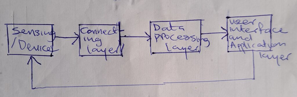 1. SENSING/DEVICE: This are the things that collect the data. They have sensors and can store data. For example, smart phones, smart houses etc.