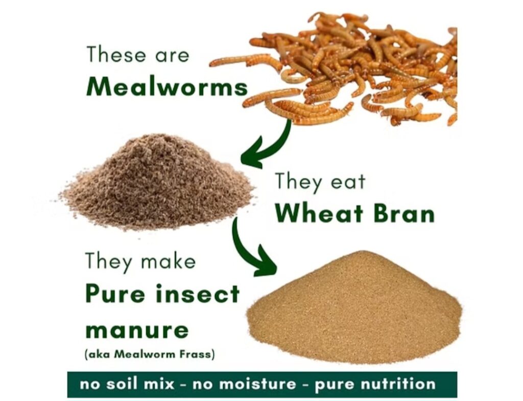 iii. Frass: The mealworm and beetle waste (frass) can be collected and used as a garden fertilizer.